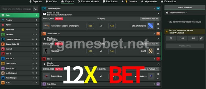 O 12X Bet oferece uma grande seleção de opções de apostas em e-sports com probabilidades competitivas